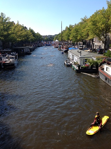 Olympiër Dion Dreesens: “Lange zwemtocht door de Amsterdamse grachten. Heeft een hoop spierpijn opgeleverd, maar was zeker de moeite waard.