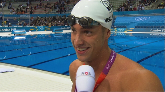 Met zijn 47,88 bleef hij welgeteld 0,04 seconden verwijderd van de tijd waarmee Pieter van den Hoogenband in de olympische halve finale van Sydney 2000 zevenenhalf jaar het wereldrecord in handen hield. Het was de gewezen Dutch Dolphin zelf die hem in de catacomben feliciteerde met zijn puike optreden. ,,Hij zei me dat hij het mooi vond dat ik lef had getoond.’’ Vele malen liever nog, zag je Verschuren denken, had hij die moed na zijn mislukte optreden op de 200 vrij eerder deze week beloond gezien met een bronzen plak.