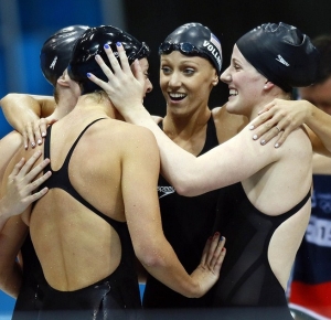 Finale estafette 4x200 vrij vrouwen, goud voor USA